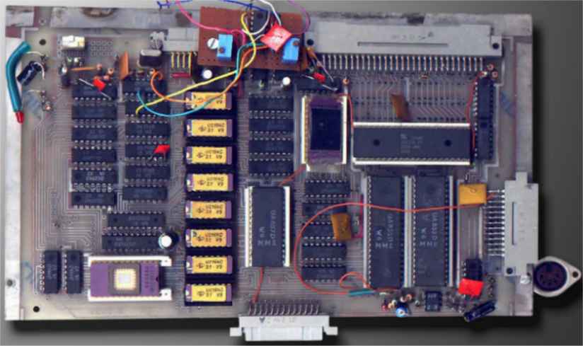 Ein Nachbau des im "Funkamateur" vorgestellten Amateurcomputers "AC1" und die Platine eines Prototyps (re.)